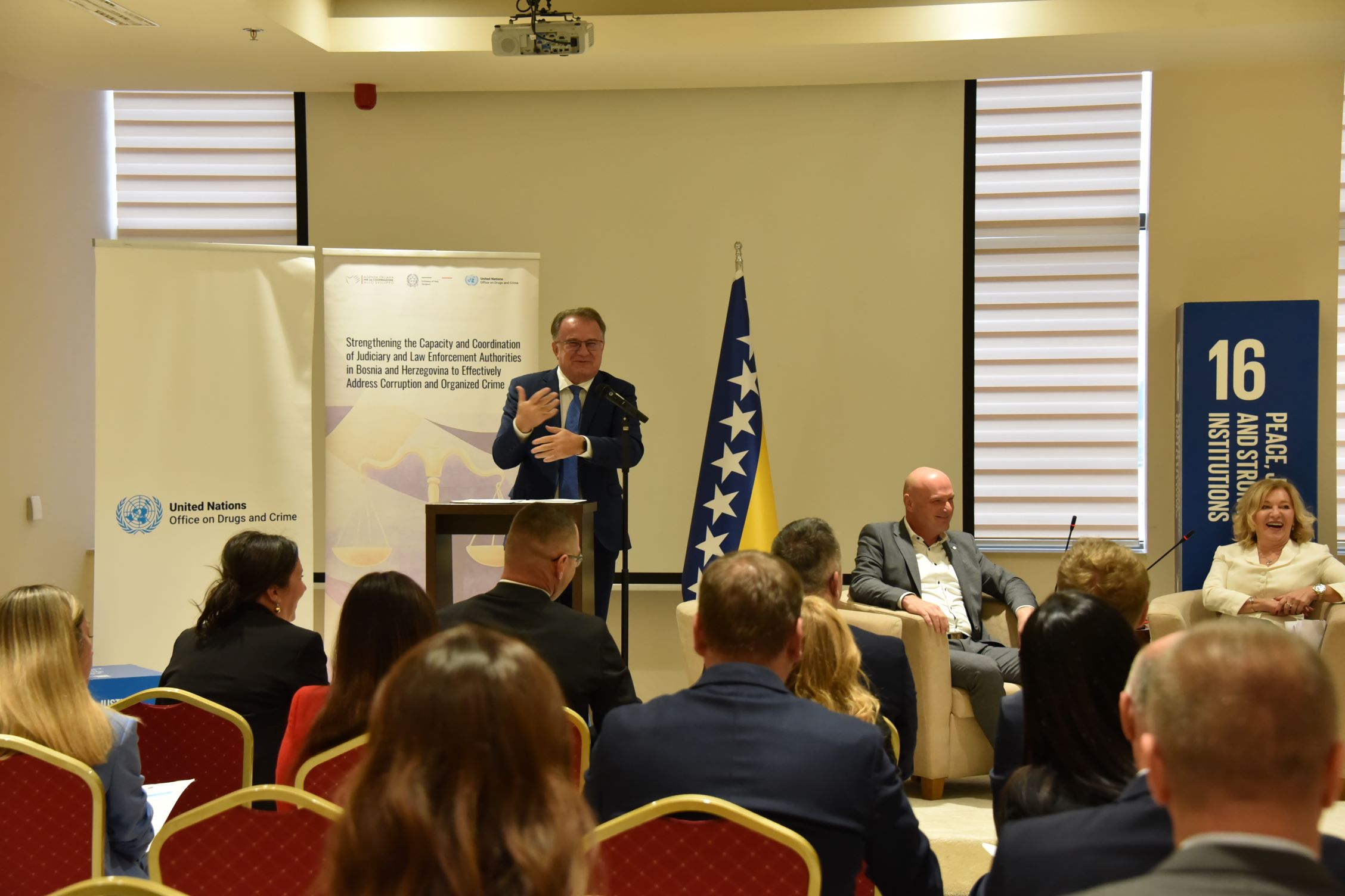 Ministar pravde BiH Davor Bunoza istaknuo je kako je BiH u protekle tri godine usvojila važne zakone u borbi protiv korupcije, a što je prepoznala Evropska unija. Dodao je kako Zakon o oduzimanju imovine postoji na entitetskim nivoima, ali ne i na državnom, te kako Ministarstvo pravde BiH završava taj zakon s radnom skupinom.