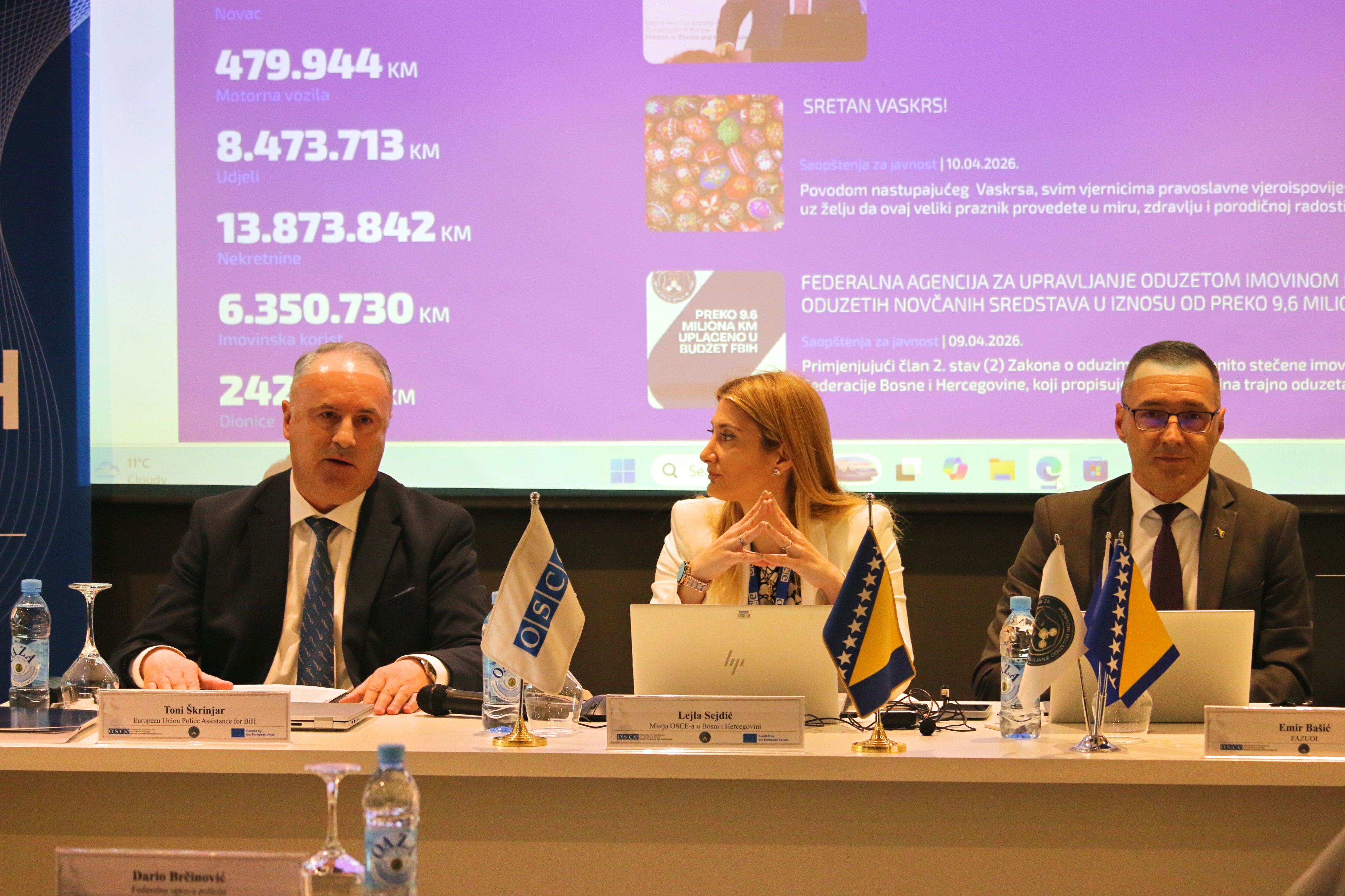 Federalna agencija za upravljanje oduzetom imovinom je, u saradnji sa Misijom OSCE-a u Bosni i Hercegovini i uz podršku projekta EUPA4BiH, organizovala 20. i 21. aprila 2026. godine u Visokom specijalističku obuku pod nazivom „Finansijske istrage i oduzimanje imovine“. Obuka je bila namijenjena predstavnicima pravosudnih i policijskih institucija Bosansko-podrinjskog kantona, kao i predstavnika POSKOK-a i FUP-a.