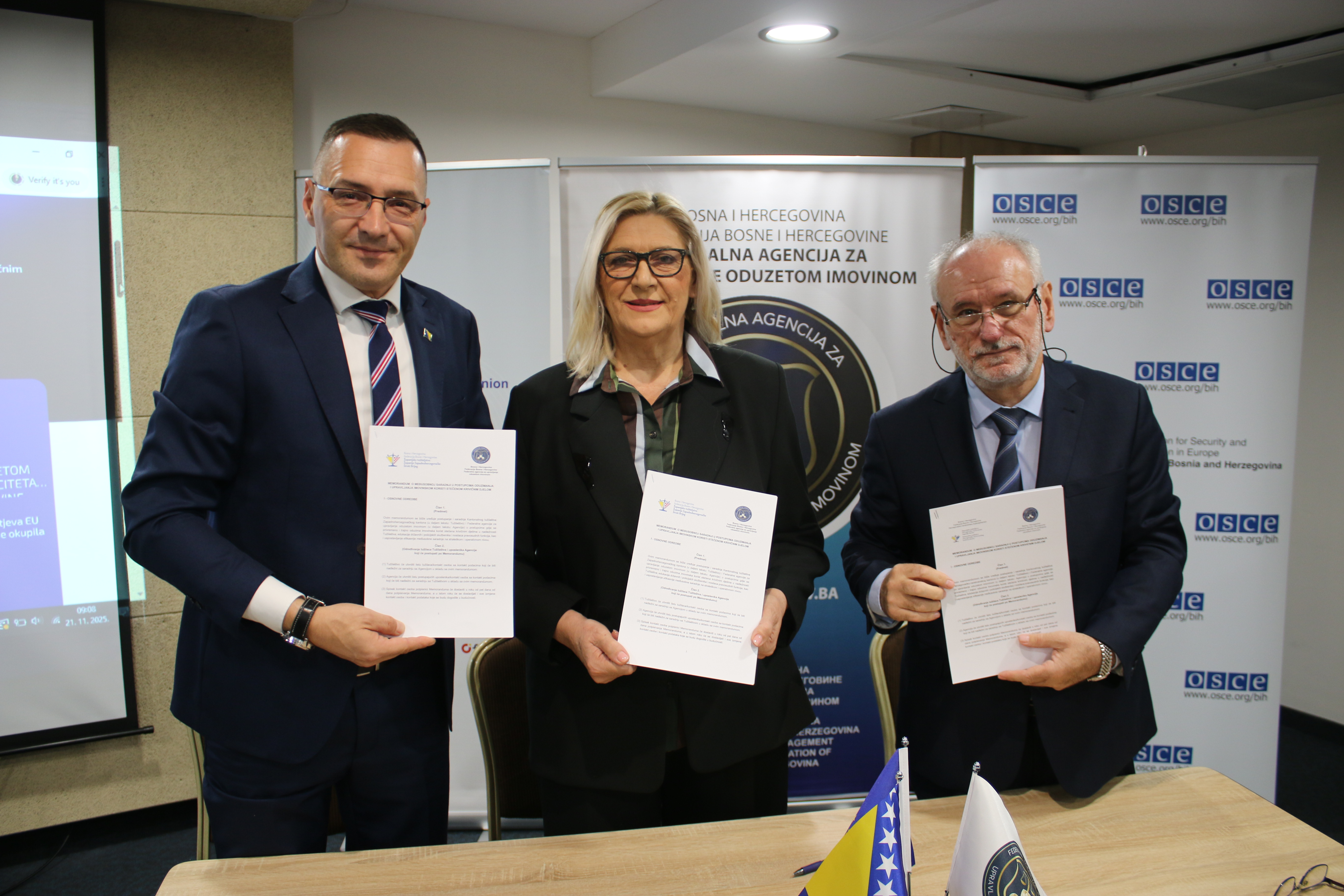 Posebnu vrijednost događaju dalo je potpisivanje memoranduma o saradnji između Federalne agencije za upravljanje oduzetom imovinom i kantonalnih/županijskih tužilaštava.
