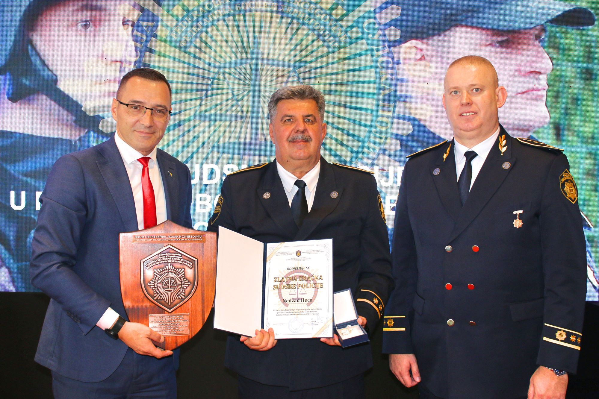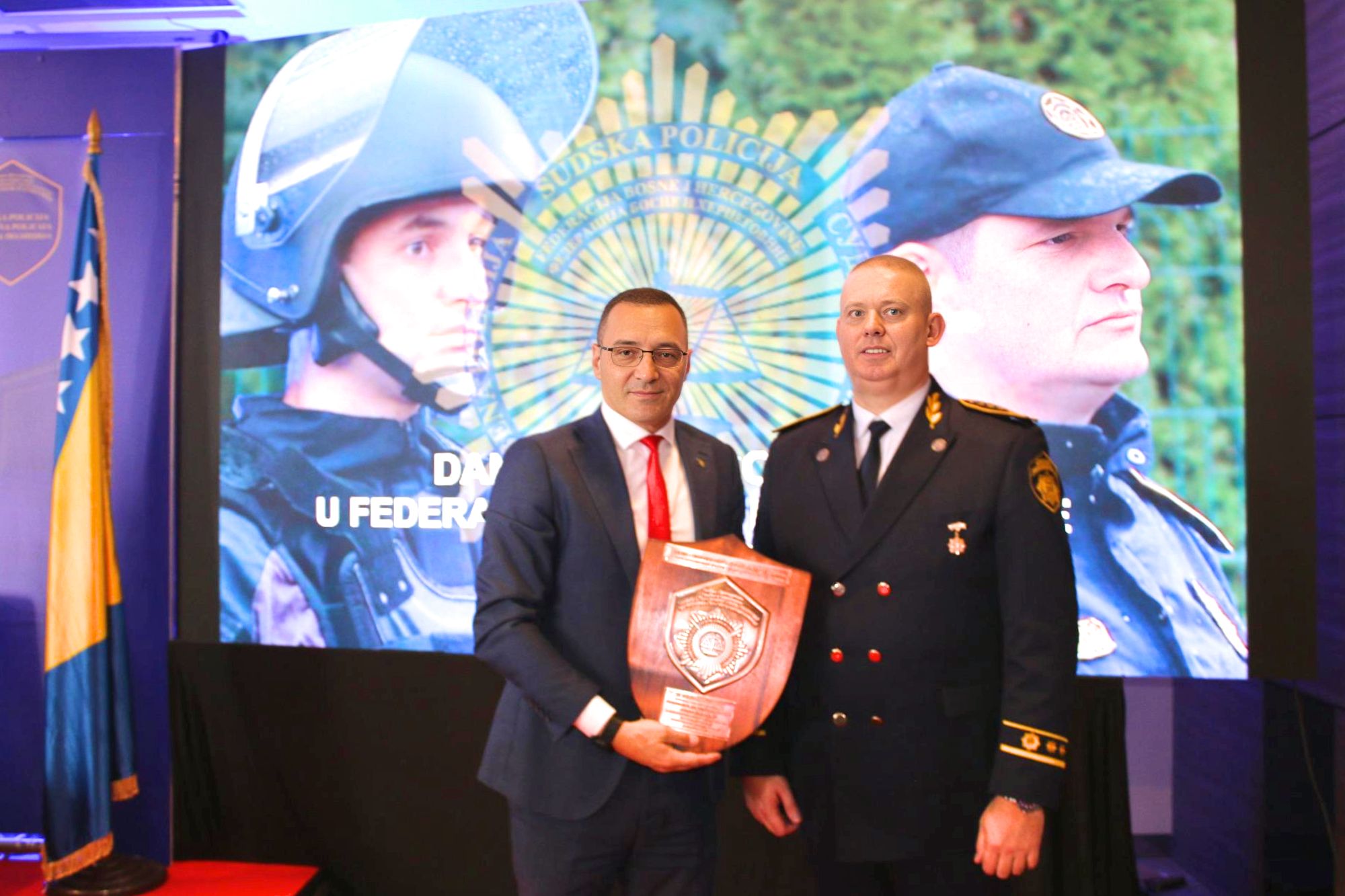 Tom prilikom, u znak zahvalnosti za doprinos jačanju kapaciteta i razvoju Sudske policije Federacije Bosne i Hercegovine, direktoru Federalne agencije za upravljanje oduzetom imovinom, gospodinu Emiru Bašiću, uručen je reljefni grb Sudske policije Federacije BiH.